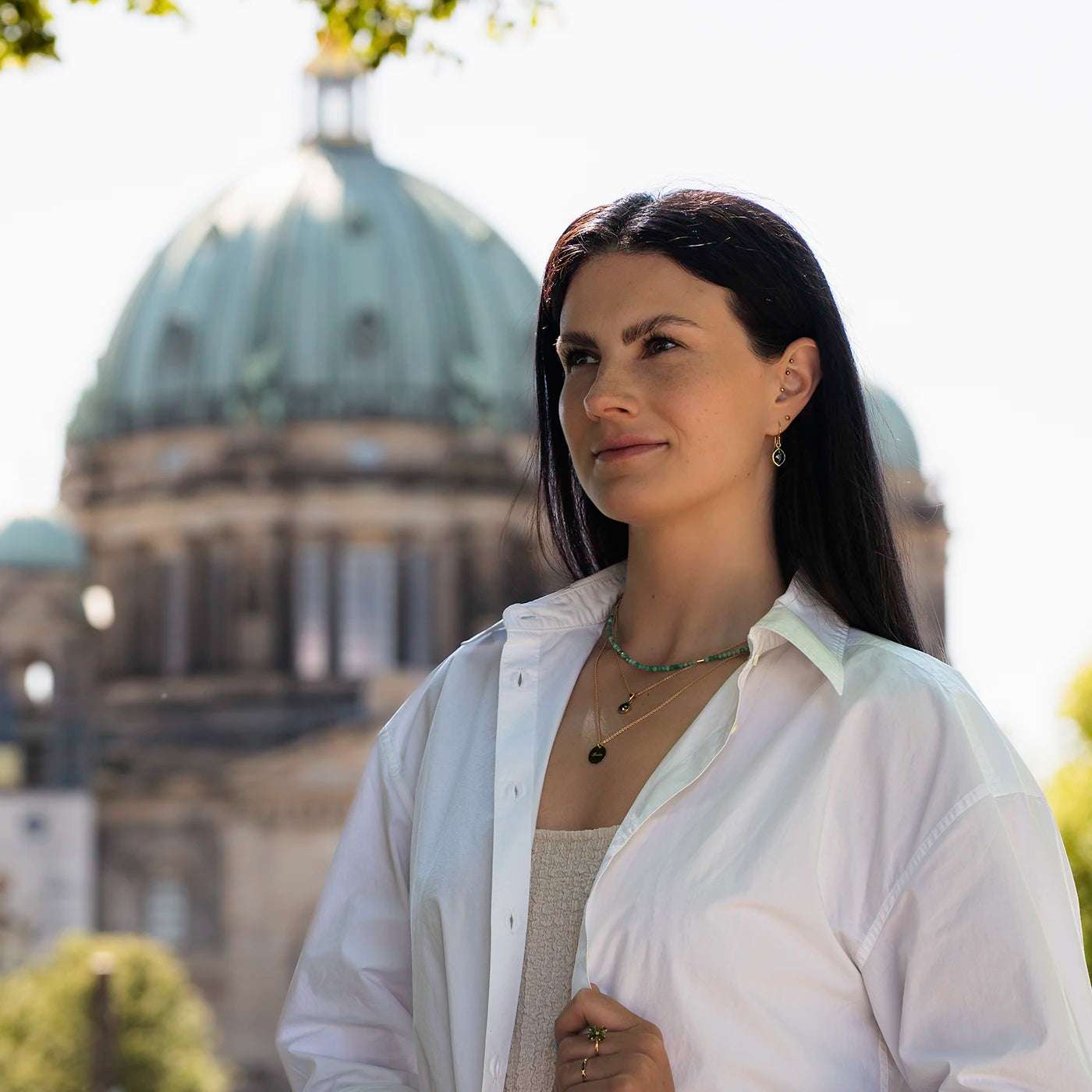 Pflegehinweis: Vermeide es, mit Ketten zu duschen oder zu schwimmen, da Feuchtigkeit das Material angreifen kann. Bewahre Ketten flach oder aufgehängt auf, um ein Verheddern zu vermeiden. Reinige sie sanft mit einem weichen Tuch oder mildem Reinigungsmittel.