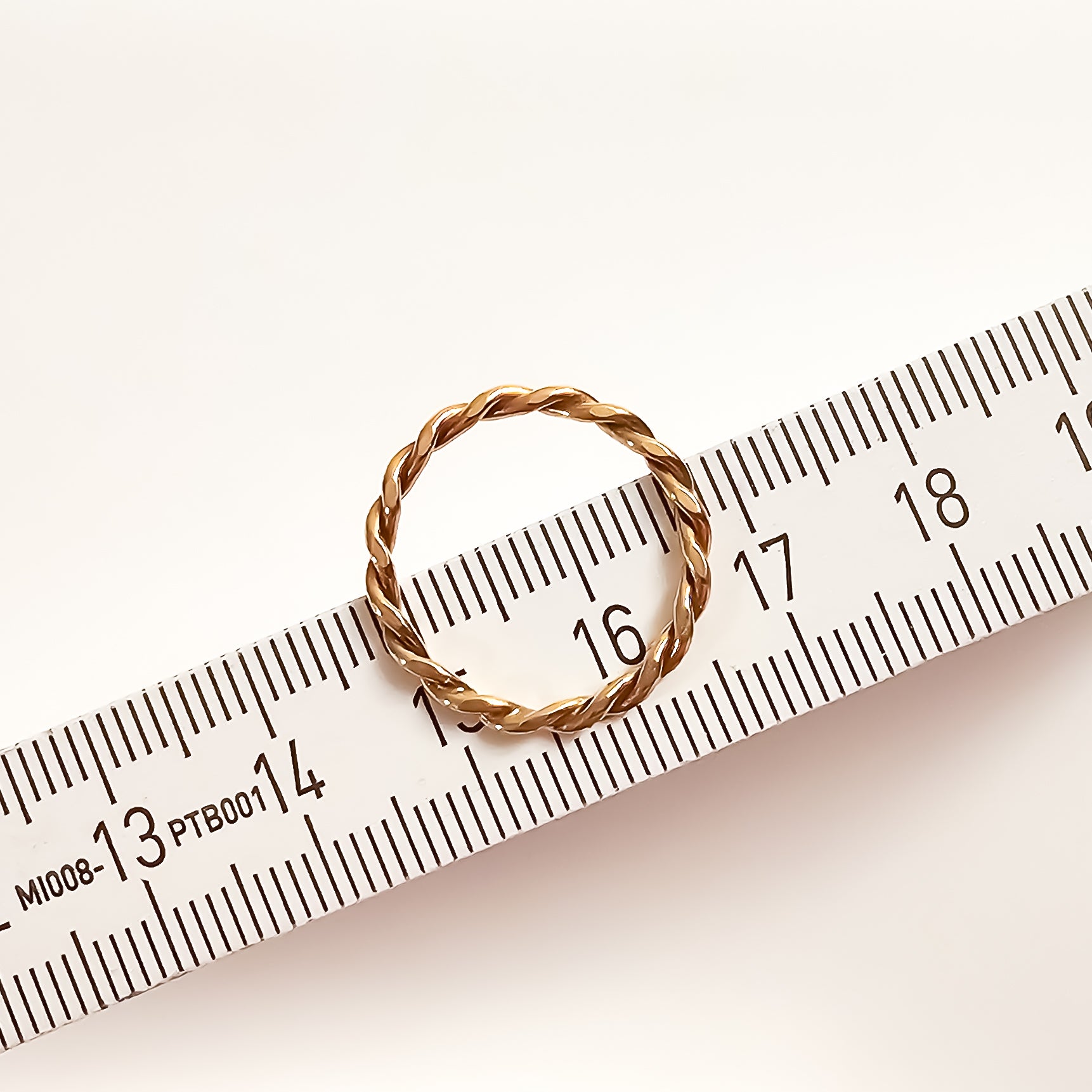 Wenn es bereits einen Ring gibt, der gut passt, hilft uns von diesem der Innendurchmesser sehr weiter, um die richtige Ringgröße zu errechnen. Hierfür legt man den Ring wie abgebildet auf ein Lineal oder Zollstock. Wichtig: Die breiteste Stelle des Ringe, die „Mitte Mitte“ , soll an die Messstreifen des Lineals geschoben werden, die Millimeterstriche gehen nun mittig durch den Ring.