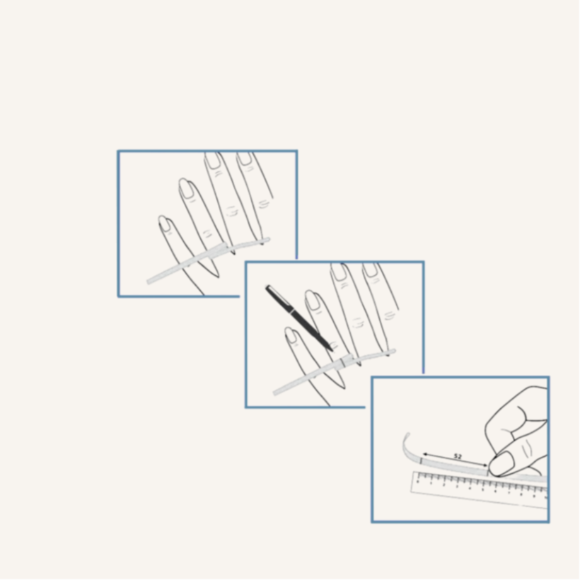 Ideal wäre noch ein Foto, wo die Hand mit dazugehöriger Person zu sehen ist. Wir richten uns dann nach unseren Erfahrungswerten, was die häufigsten Ringgrößen für die angegebenen Informationen sind.